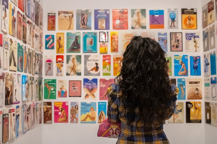 En el primer núcleo, dedicado a las materialidades del cuerpo, se presentan textiles y objetos cotidianos que funcionan como extensión corporal. María Ezcurra explicó que parte de su investigación se centra en materiales como las pantimedias, que utiliza para construir piezas que remiten a la presencia y ausencia del cuerpo.