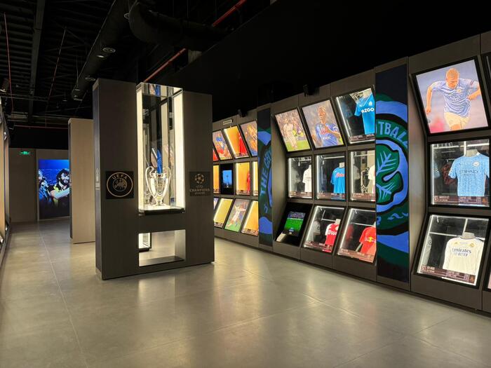 La sala Hitos abre la visita con un cortometraje inmersivo sobre el nacimiento del futbol, mientras que LALIGA reúne camisetas de grandes figuras como Messi, Cristiano Ronaldo, Maradona o Simeone. En la sala Templos, los estadios más icónicos del mundo cobran vida en formato 360º, y en Champions vs. Libertadores se entrelazan las grandes gestas de Europa y Sudamérica. El viaje continúa en Selecciones Nacionales, donde vitrinas envolventes exhiben piezas de leyendas como Pelé, Cruyff o Zidane. A lo largo de todo el recorrido, camisetas, botas, balones y trofeos originales conectan al visitante con algunos de los momentos más inolvidables de la historia de este deporte.