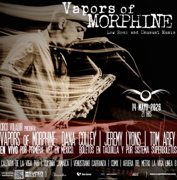 Vapors of Morphine, el trío que mantiene vivo el legado de la icónica banda Morphine se presentará por primera vez en la Ciudad de México, con un espectáculo en el que interpretarán parte de las obras creadas en compañía de Mark Sandman, bajista original del grupo que falleció en Italia durante una presentación en vivo del año 1999.